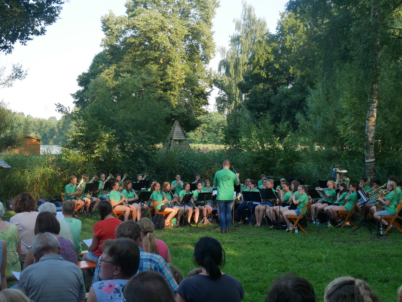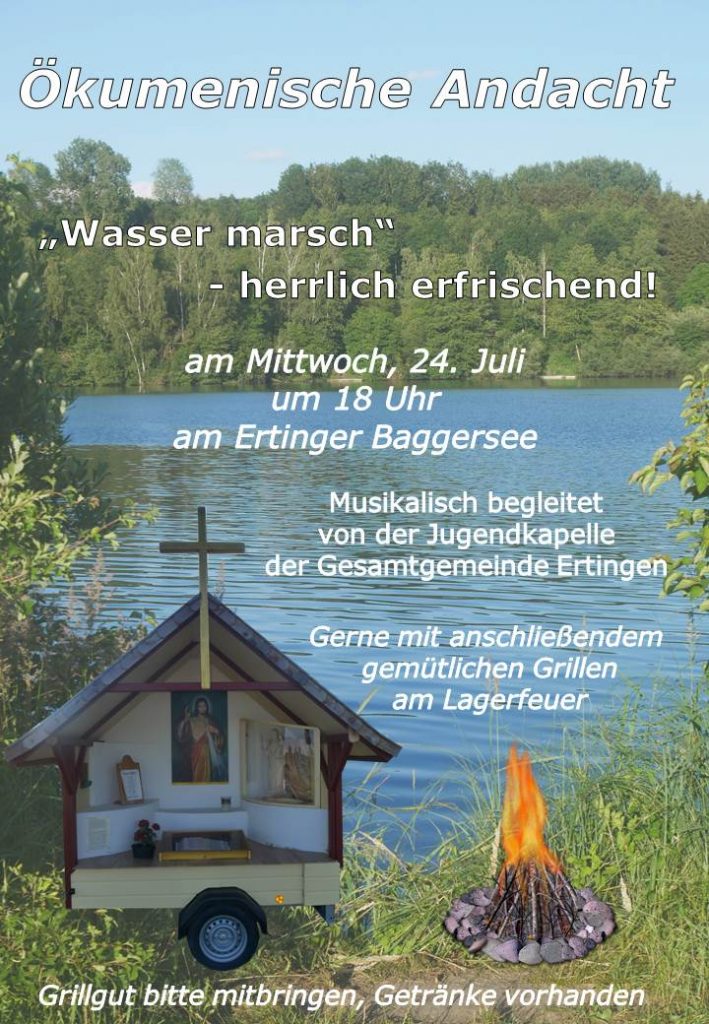 “Wasser marsch” - herrlich erfrischend! Am Mittwoch, 24. Juli fand um 18 Uhr am Grillplatz der Schwarzachtalseen eine ökumenische Andacht statt. Die Veranstaltung wurde musikalisch begleitet von der Jugendkapelle der Gesamtgemeinde Ertingen.