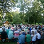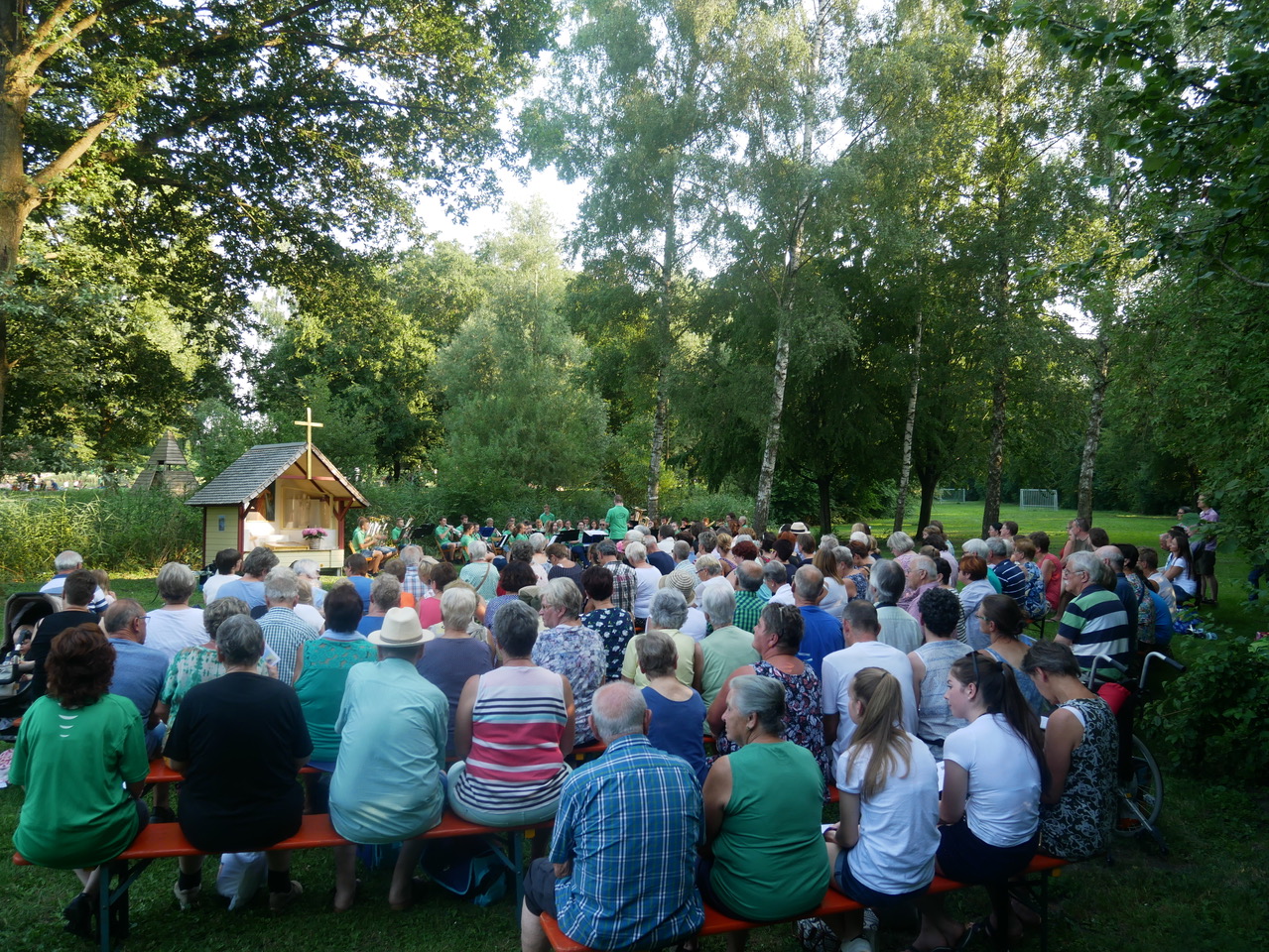 Über 200 Menschen - jung und alt - versammelten sich am frühen Abend bei den Grillstellen des Ertinger Baggersees vor einer kleinen mobilen Kapelle. Bruno Hafner hatte diese vor etwa drei Jahren mit seiner Firmgruppe gebaut. Seither ist sie immer wieder im Einsatz und rollt für ganz verschiedene Gottesdienste durch Oberschwaben.